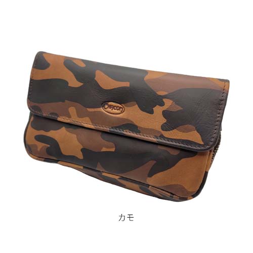 ヴィンテージ風の茶色と、迷彩がプリントされたカモは本革製。