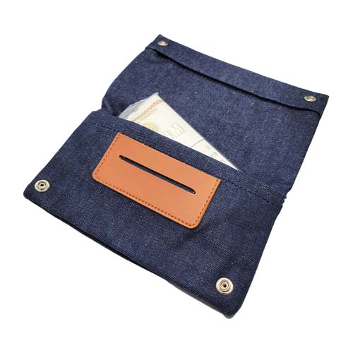 デニムの生産地として有名な【岡山デニム】を使用したハンドメイドのシャグポーチ。